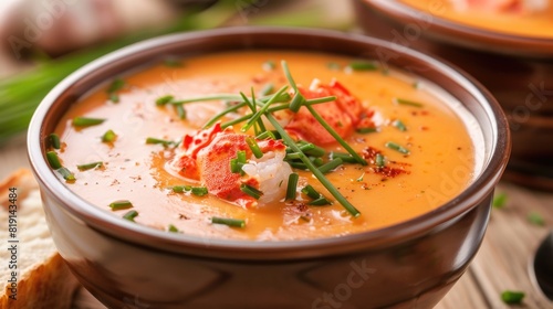 Lobster bisque soup garnished with chives