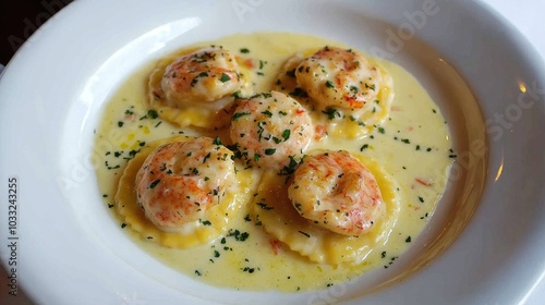 lobster, ravioli, sauce, saffron, cream, epicure, dish, pasta, food, closeup, italian, kitchen, cookery, culinary, elegant, eatery, dining, meal, favor, plate, broth, tasty, seafood, preparation, fresh, herb, garnish, yellow, comfort, homemade, rich, artisan, chef, traditional, delicious, life events, savoury, luxury, presentation, appetence, fine, bistro, indulgent, visual
