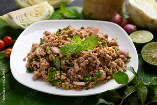 Local Thai food, Spicy minced pork salad (Larb Moo)