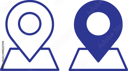 Location icons, map markers, blue and white, minimalist design, geometric shapes, navigation symbols, flat illustration, vector graphics,