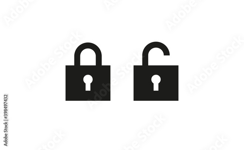 Lock icon in flat style. Security symbol vector illustration. Padlock open an closed.