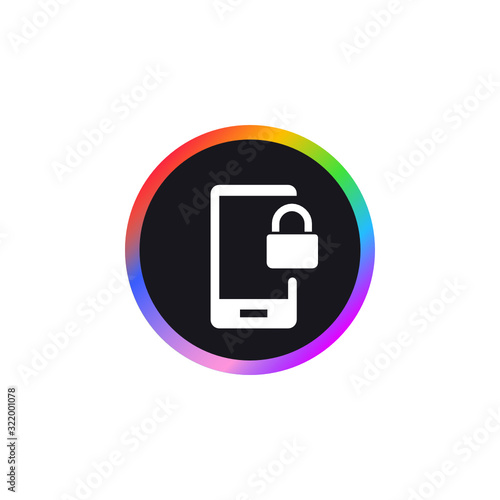 mobile, lock, device, security, secure, locked, smartphone, password, encrypted, encryption, tablet, activate, activation, app, design, symbol, icon, web, monogram