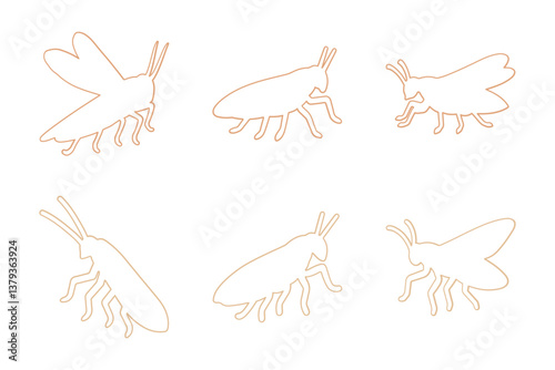 fly, outline, wildlife, animal, line, icon, locust, set, collection