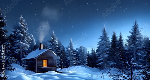 Log Cabin Surrounded by Snowy Pines on a Chilly Night_075