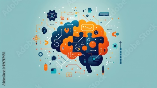 logic, interconnected, puzzle, piece, brain, flat, design, illustration, mind, binary, intelligence, cyberspace, robot, tech, cyber, innovation, learning, connect, future, futuristic, network, science, smart, creativity, electricity, engineering, electronic, idea, information, machine, datum, circuit, cyberspace, human, processor, ai, head, artificial, cyborg, chips, communication, motherboard, computer, business