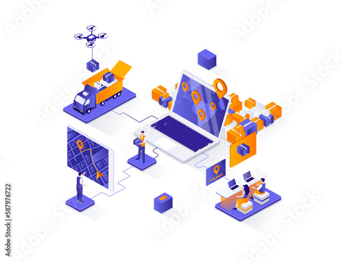 global, logistic, web, isometric, service, three-dimensional, flat, cartoon, concept, website, site, scene, banner, colours, people, character, person, illustration, background, template, design, icon, modern, desktop, interface, graphic, layout, page, shipping, route, transportation, distribution, tracking, parcel, express, post, deliver, warehouse, export, import, freight, cargo, load, truck
