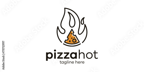 logo design combination of pizza shape with fire, hot pizza logo design, minimalist lines.