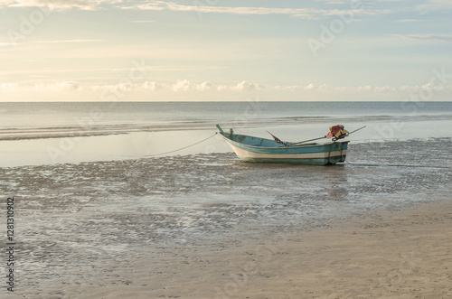water, boat, beach, sunset, calm, serene, nature, landscape, ocean, shore, calmness, fishing, coastal, scenery, horizon, solitude, travel, summer, idylli, peaceful, scenic, adventure, relaxation, sky, seascape, get-away, environment, exploration
