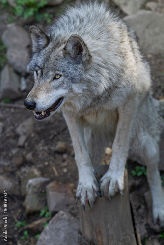 standing, wolf, mammal, photo, no people, discovery, eye, dog, majestic, playful, vertebrate, head shot, hunter, north, timberland, timber, carnivorous, portrait, closeup, quebec, danger, animal themes, nature, animal, one animal, protection, fur, head, looking, copy space, staring, authority, wilderness, fear, land, meadow, ecosystem, survival, snout