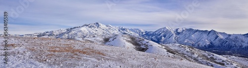 Lone Peak from Mack Hill Sensei hiking trail mountain views by Lone Peak Wilderness, Wasatch Rocky Mountains, Utah. USA.