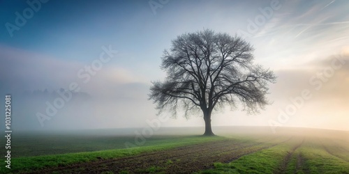 Lonely creepy tree in Bavaria covered in fog for Halloween