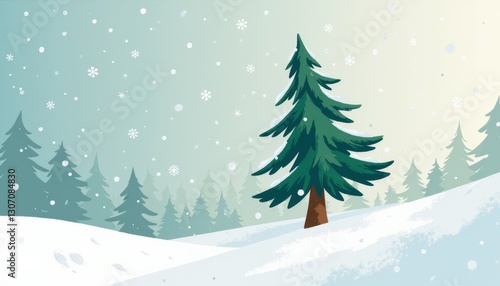 evergreen, snow, winter, landscape, resilience, nature, tree, snowflake, solitude, cold, white, green, illustration, serene, calm, outdoors, minimalism, softness, peaceful, beauty, wintery, holiday, frost, calmness, stillness, pine, forest, horizon, background, dreamy, blur, season, isolation, symbol, weather, coldness, decorative, seasonal, 1, windswept, snowy, overcast, natural, atmospheric, texture, harmony