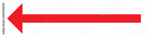 Long arrows. Red arrow pointing vector. Red left arrow icon. Straight long arrow pointing . Vector red long arrow icon. Thin long arrow vector icon. A solid long arrow pointing on white background.