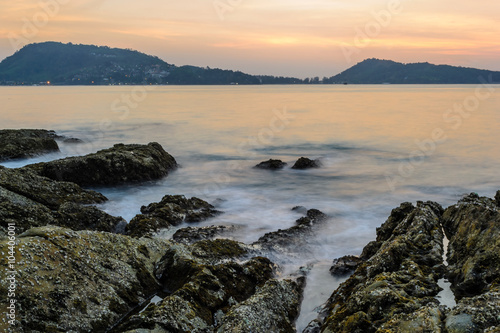 Long Exposure of beautiful Sunset at Kalim beach, Phuket ,Thailand