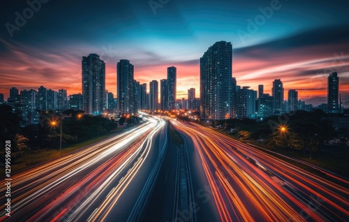 long exposure, traffic, light, car, road, exposure, skyline, city, aerial, apartment, architecture, asia, asian, blur, building, capital city, city landscape, condominium, curve, downtown, drive, dusk, evening, headlamp, highway, holiday, landmark, landscape, line, long, metropolitan, motion, nature, night, panorama, sky, skyscraper, speed, street, sunset, transportation, travel, twilight, urban, vehicle, view
