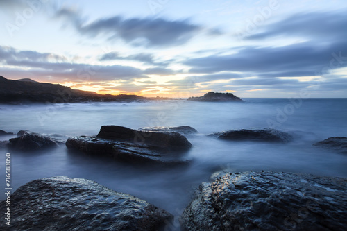 Long exposure shot of amazing beach sunset in Atlantic ocean