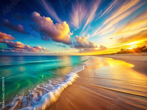 beach, summer, sea, ocean, background, long exposure, wave, sand, sunset, sunrise, coastal, vacation, travel, holiday, tropical, water, sky, light, blur, smooth, texture, copy space, design, template, advertising, marketing, photo, image, photo, illustration, graphic, element, banner, poster, card, website, web, digital, print, booklet, flier, wallpaper, desktop, mobile, screen