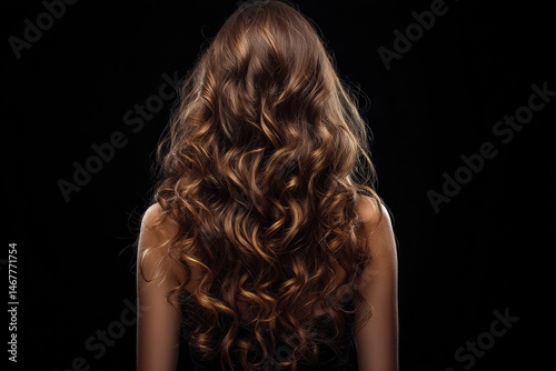 hair, curl, long, brown, wave, texture, shine, glossy, elegant, dramatic, beauty, style, fashion, salon, model, photo, portrait, dark, background, studio, rich, cascade, volume, flowing, luxurious, gorgeous, vibrant, smooth, healthy, care, treatment, product, shampoo, conditioner, styling, hair care, commercial, image, artistic, professional