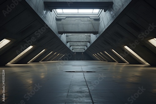 concrete, hallway, corridor, architecture, interior, modern, industrial, design, futuristic, minimalist, building, space, empty, geometric, perspective, light, shadow, line, abstract, pattern, texture, steel, dark, grey, cold, stark, clean, simple, rough, urban, grunge, construction, contemporary, loft, warehouse, structure, angle, symmetric, ceiling, floor, wall, skylight