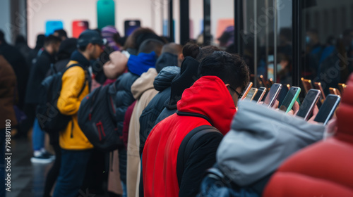 long queue in fornt of store because of new smartphone