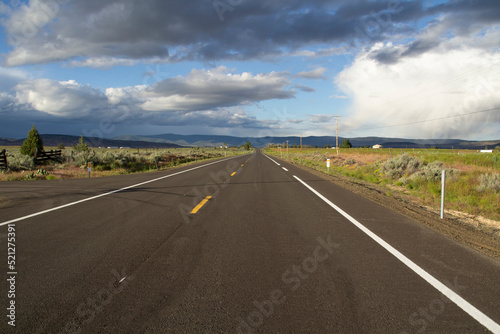 Long Straight Stretch of Paved Two Lane Road Under Cloudy Skies in Klamath County, Oregon