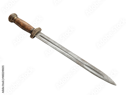 knife, blade, metal, handle, wood, ornate, engraved, historical, ancient, weapon, military, viking, scandinavian, long, straight, pointed, sharp, bronze, gold, decorative, craftsmanship, artifact, museum, display, antique, rare, cold, steel, defense, attack, killed, sharpness, cutting, protection, history, heritage, metalwork, ornamentation, detail, handcraft, mediaeval, war, combat, tool, hunting