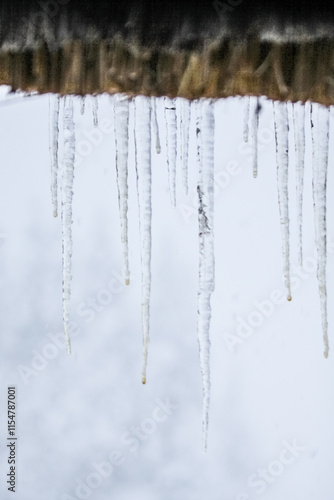 japan, winter, snow, cold, icy, icicle, ice, glacé, thatch, roof, straw, hanging, long, thin, nature, outdoors, weather, season, melting, dripping, thaw, freeze, white, clear, crystal, thatched roof, winter scene, cold weather