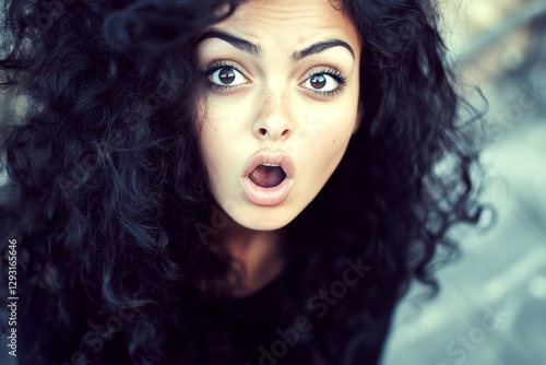 Long trim - curly hair. Pretty very stunned mixed-race girl - for ads, brochure and digital use. Commercial digital ads concept creative picture art. African model creativity inspiration.