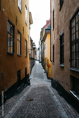 Looking down a historic road in Gamla Stan, Stockholm