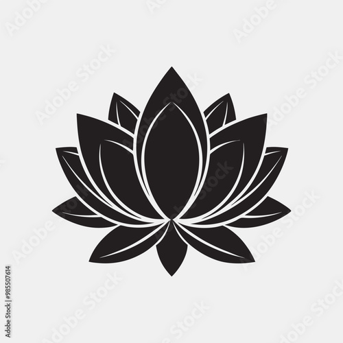 Lotus Black and White Vector Illustration Minimalistic Floral Line Art