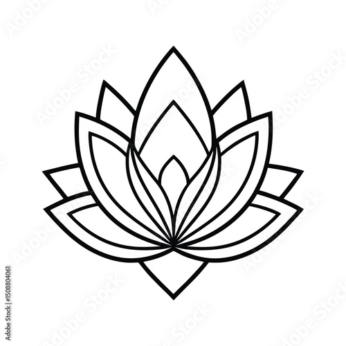 lotus, flower, bloom, sacred, yoga, meditation, spiritual, symbol, zen, line art, monochrome, floral, wellness, harmony, balance, purity, elegance, beauty, nature, botanical, ornament, shape, contour, minimalist, decorative, icon, sticker