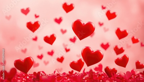 Love background with soft red and pink hues, hearts floating through the air, and a delicate texture that gives a romantic, warm feel to the scene.