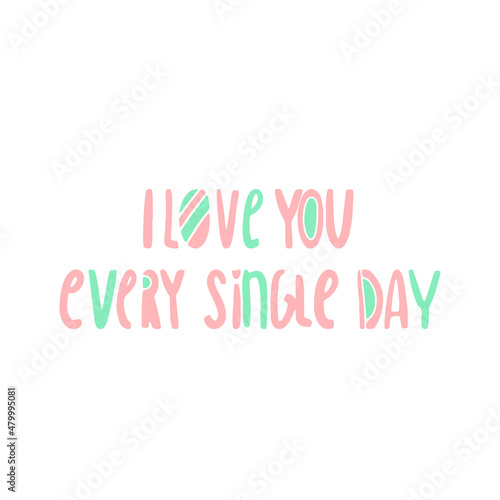 Love calligraphy for February 14, Valentine's Day. A greeting card with a congratulatory phrase. Color flat vector illustration isolated on a white background