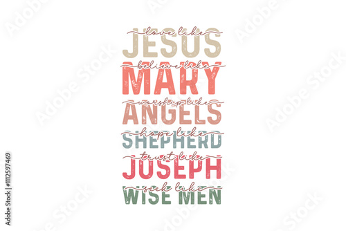 love like jesus believe like mary worship like angels hope like shepherd trust like joseph seek like wise men, Christmas Christian Quote SVG Typography Design
