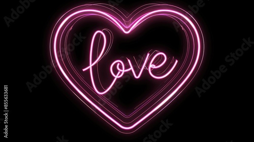 Love symbol with pink filling and bordered outline on black backdrop