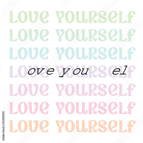 love, yourself, self, motivation, confidence, lettering, danish, pastel, cute, colourful, gradient, aesthetic, pink, modern, trendy, script, text, type, typography, font, vintage, retro, t-shirt, print, design, textile, poster, square, template, vector, isolated, white background, simple, repeat, teenage, phrase, quote, message, motivational, inspirational, mood, positive, girl, feminine, concept, happy