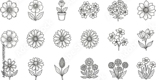 flower, floral, blossom, bloom, botanical, nature, garden, spring, summer, plant, beauty, decorative, design, vintage, elegant, drawing, vignetting, outline, art, illustration, vector, isolated, background, white, black, pattern, graphic, element, decoration, ornamental, flourish, invitation, card, wedding, retro, antique, hand-made, creative, line