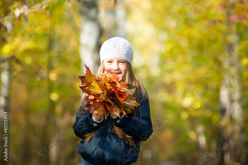 lovely girl with a bunch of leaves