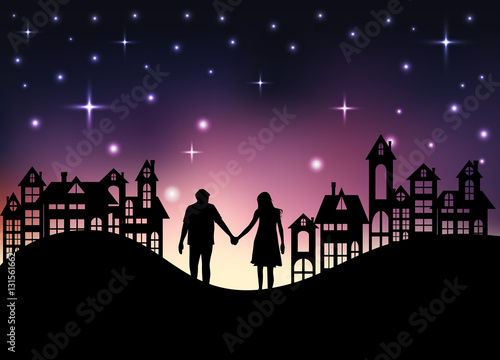 adult, architecture, art, back, black, building, city, couple, elegance, female, fun, girl, horizontal, illustration, image, innocence, life, line, love, male, man, moon, night, outline, people, scene, scenery, silhouette, sky, skyline, star, town, urban, vector, woman, young, youth