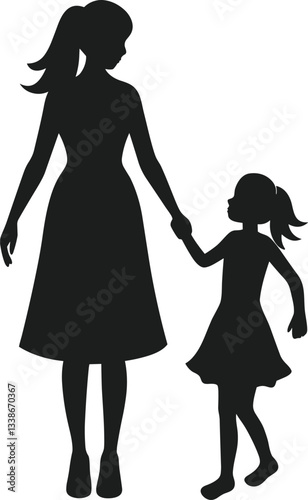 mother, daughter, mother, children, family, love, bond, motherhood, maternal, parenting, affection, togetherness, silhouette, black-and-white, vector, illustration, design, artwork, feminine, woman, girl, care, support, human relationships, happiness, celebration, mother's day, appreciation, warm, adorable, strong, lass, eltern, cute