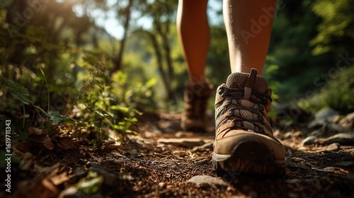 hiking, boot, trail, forest, sunlight, tree, foliage, movement, freedom, adventure, leg, foot, walking, path, nature, landscape, terrain, rugged, closeup, detail, low, angle, view, sharpened, natural, light, green, leaf, exploration, journey, wilderness, trekking, activity, sport, healthy, lifestyle, environment, conservation, travel, tour tourism, holiday, vacation, destination, challenge, advertising, design, website, background