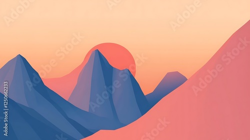 mountain, sunset, landscape, art, digital, render, low, polygon, geometric, shape, colours, orange, pink, coral, blue, indigo, teal, shades, hue, tone, gradient, background, design, abstract, illustration, graphic, image, scene, view, sky, horizon, sun, light, shadow, peaceful, serene, calm, tranquil, minimalist, simple, aesthetic, beauty, nature, artwork