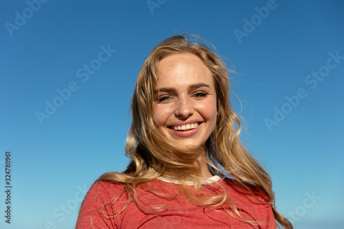 Low view happy young woman