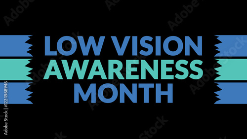 Low Vision Awareness Month text with side lines on a black background. Which is observed every year in February to celebrate Low Vision Awareness Month.