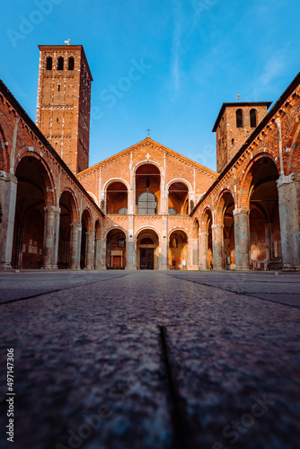 Low wide view of the Basilica of Sant'Ambrogio, vertical