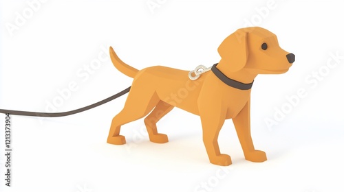 dog, puppy, retriever, gold, leash, pet, canino, animal, three-dimensional, model, low, polygon, render, illustration, graphic, cute, adorable, cartoon, friendly, playful, happy, loyal, companion, domestic, mammal, vertebrate, fur, tail, ear, eye, nose, mouth, paw, leg, body, white, background, isolated, simple, design, art, image, picture, digital, technology, vector, artwork