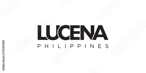 Lucena in the Philippines emblem. The design features a geometric style, vector illustration with bold typography in a modern font. The graphic slogan lettering.