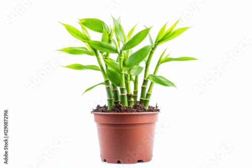 Lucky Bamboo Plant in Pot. Close-up of Bright and Colourful Bamboo Tree Branch on White Background