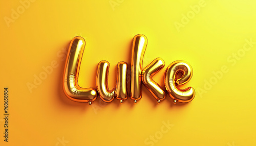 LUKE Golden 3D Balloon Letters on Solid Background