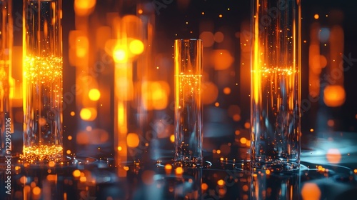 abstract, futuristic, glowing, cylinder, glasses, tube, light, orange, blue, dark, sparkle, shiny, reflective, energy, modern, technology, science, illuminated, vibrant, bright, particle, cosmos, liquid, fire, plasma, digital, art, design, graphic, style, aesthetic, background, texture, scene, image, illustration, visual, effect, glow, three-dimensional, render